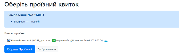 Наступним кроком перед Вашим перельотом є бронювання квитків через вебсайт авіакомпанії, де система буде автоматично пропонувати списати переліт з проїзного.